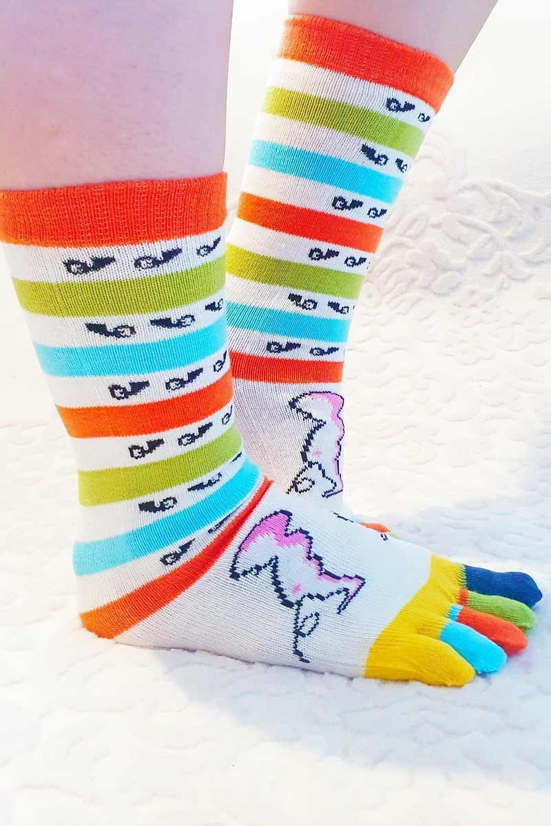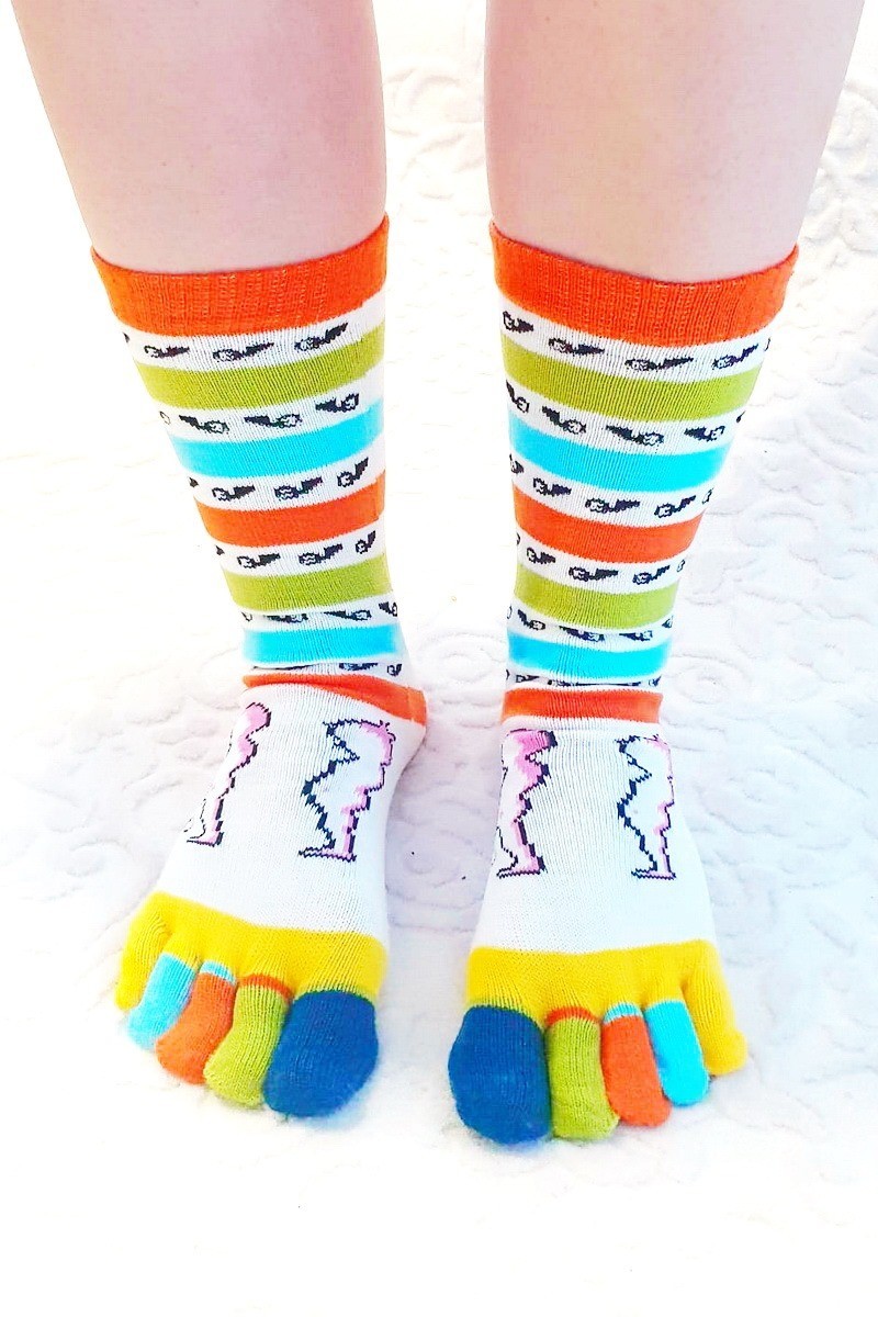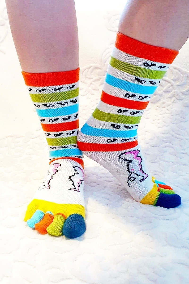 Sosete colorate cu degete, din acryl si bumbac, fara calcai.