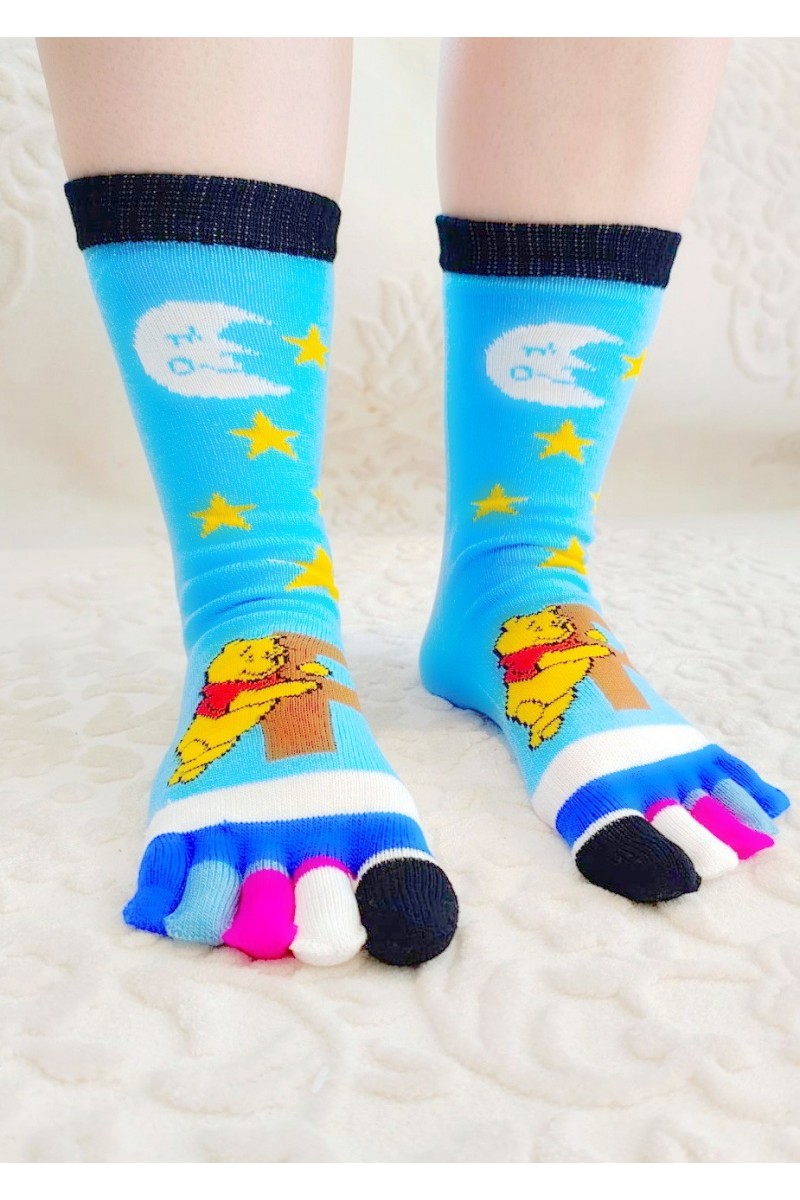 Sosete colorate cu degete, din acryl si bumbac, fara calcai.