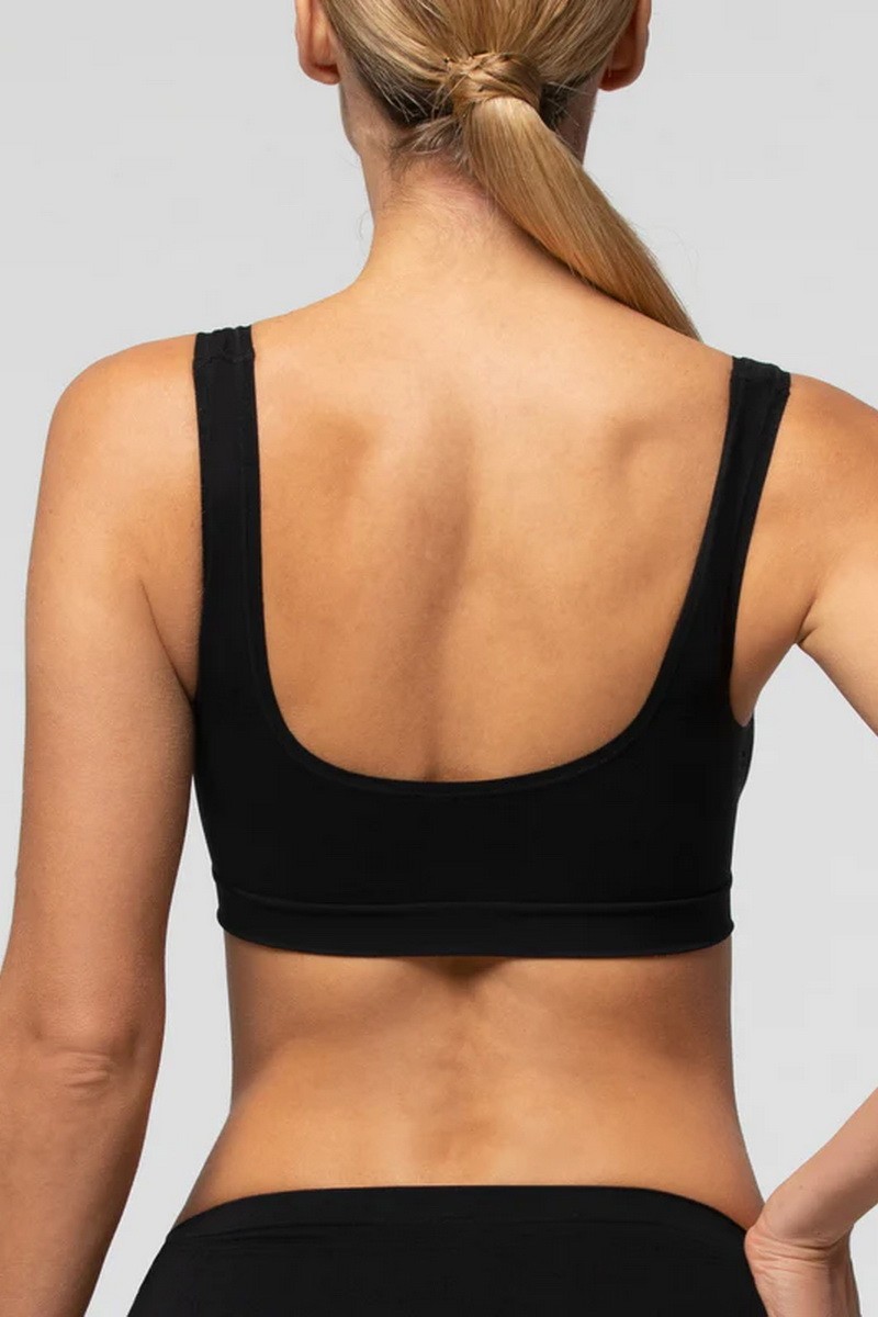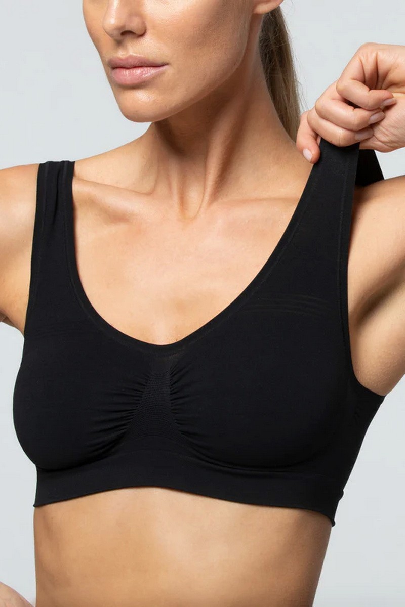 Bustiera din microfibra moale, fara cusaturi, cu finisari plate si material respirabil pentru un plus de confort.