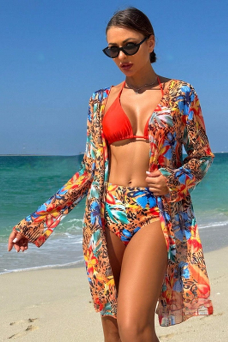 Costum de baie din 3 piese, sutien triunghi cu buretei detasabili.