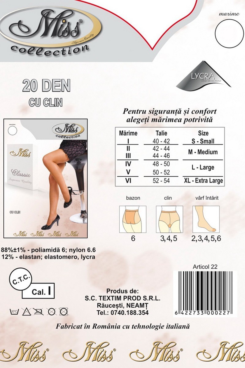 Miss Collection - ciorapi 15 den cu elastan , bazon si chilot marcat.