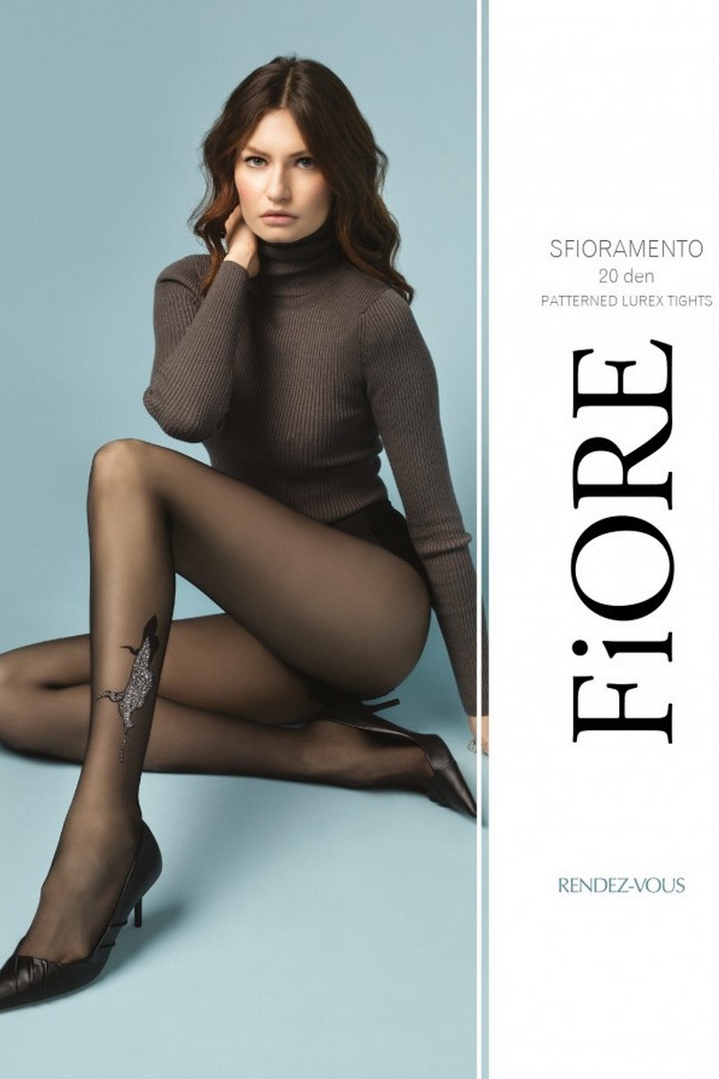 Ciorapi 20 den , lycra , transparent , semimat cu model cu lurex argintiu pe glezna.