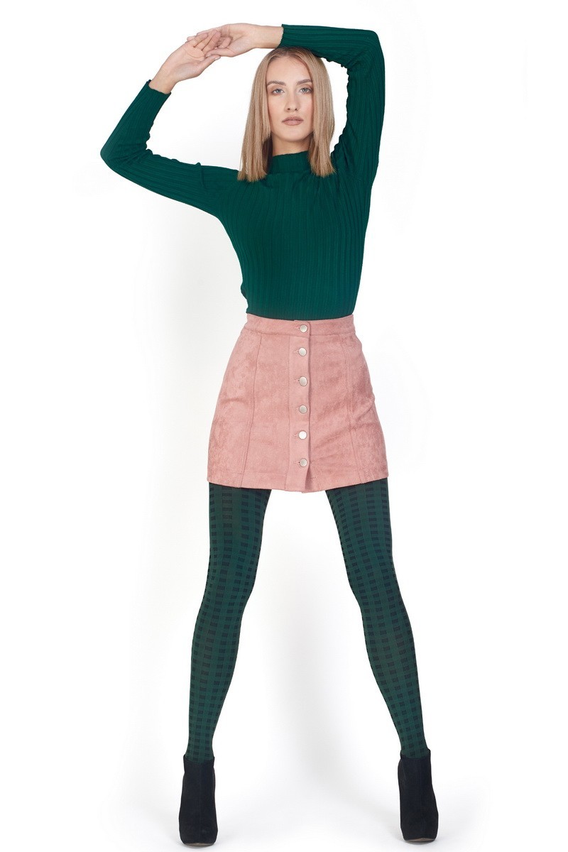 Ciorapi grosi 80 den, cu model in patratele bordo /negru.