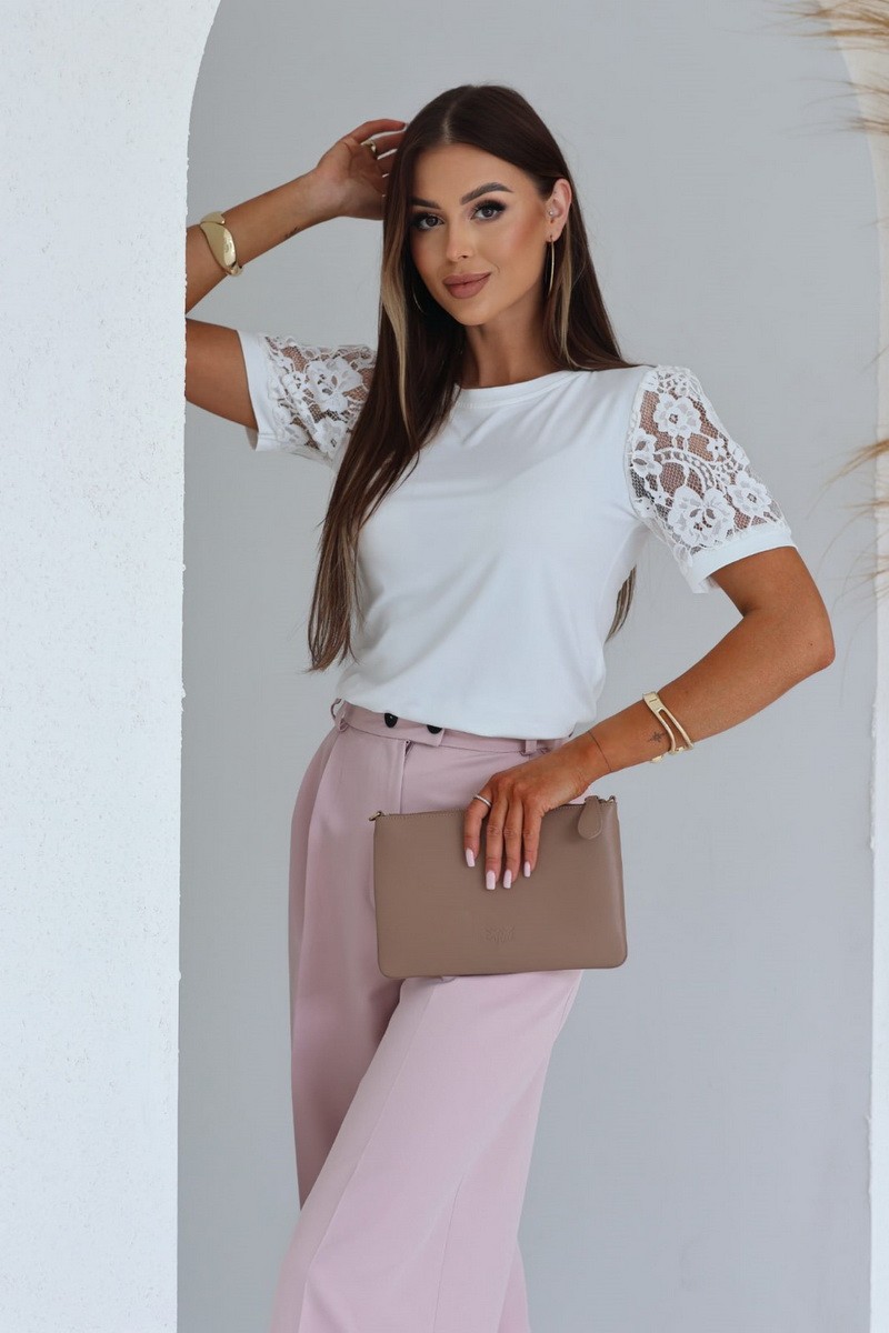Bluza la baza gatului, cu maneca din dantela fina si eleganta, se preteaza la orice gen de tinuta, eleganta sau casual in functie de accesorizare.