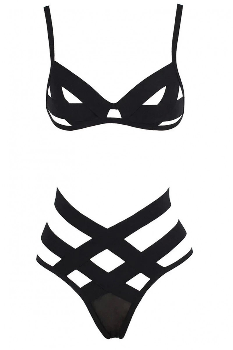 Compleu sexy format din bustiera dn benzi elastice late si chilot din benzi elastice late.