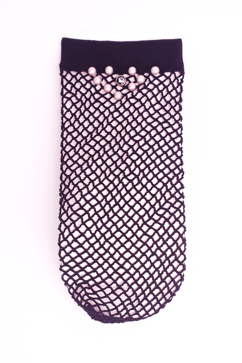 Sosete 1/4 plasa cu perle si strasuri