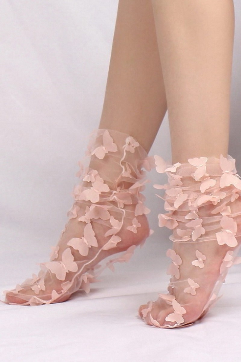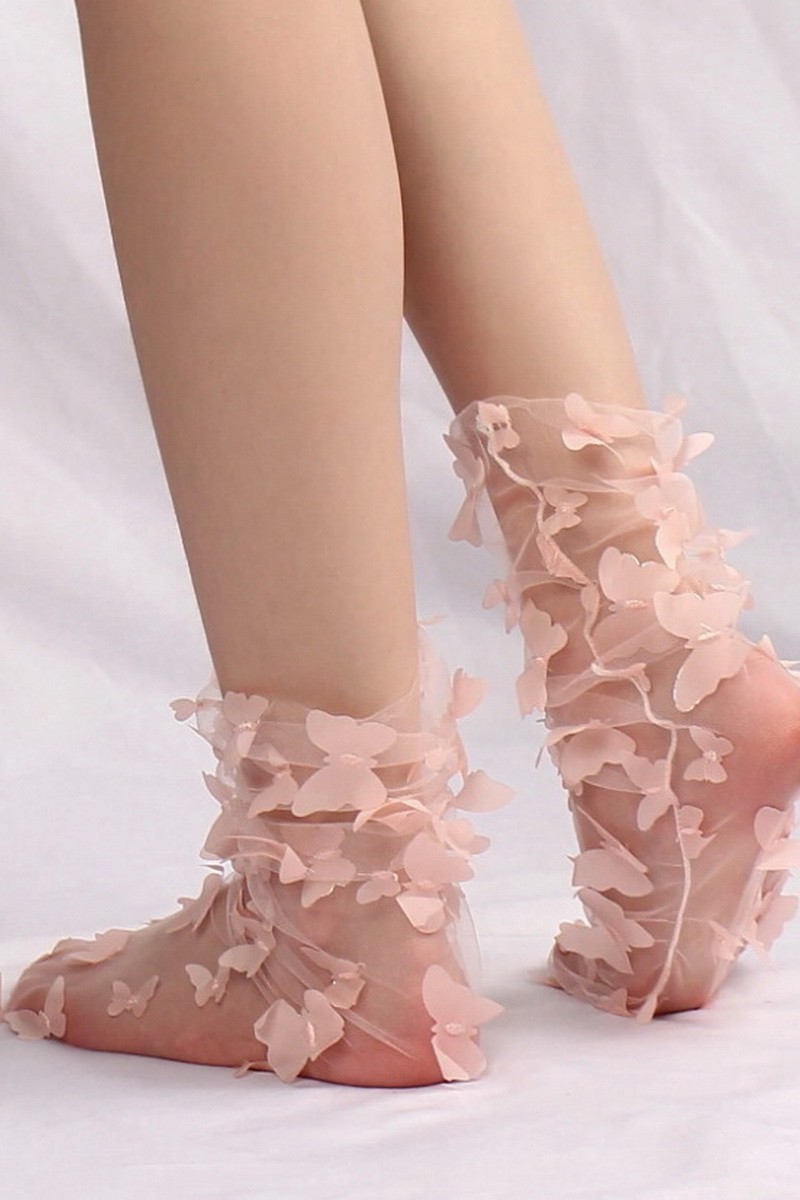 Sosete fine, 1/4 din tulle brodat simplu, fin si elegant, cu fluturi cusuti.