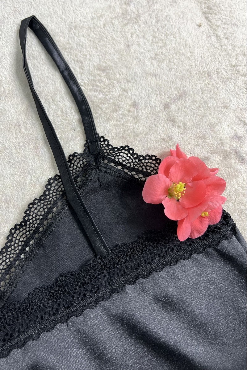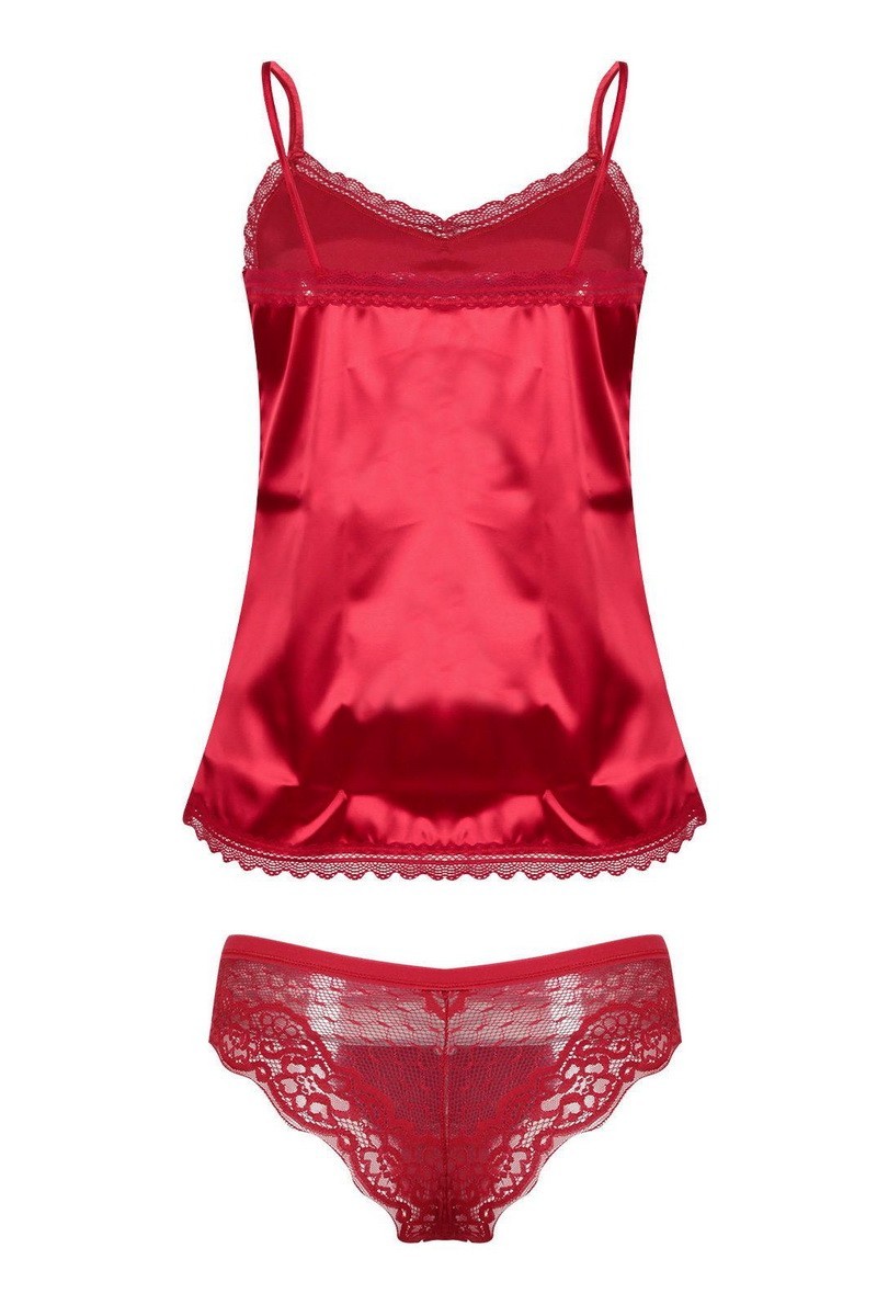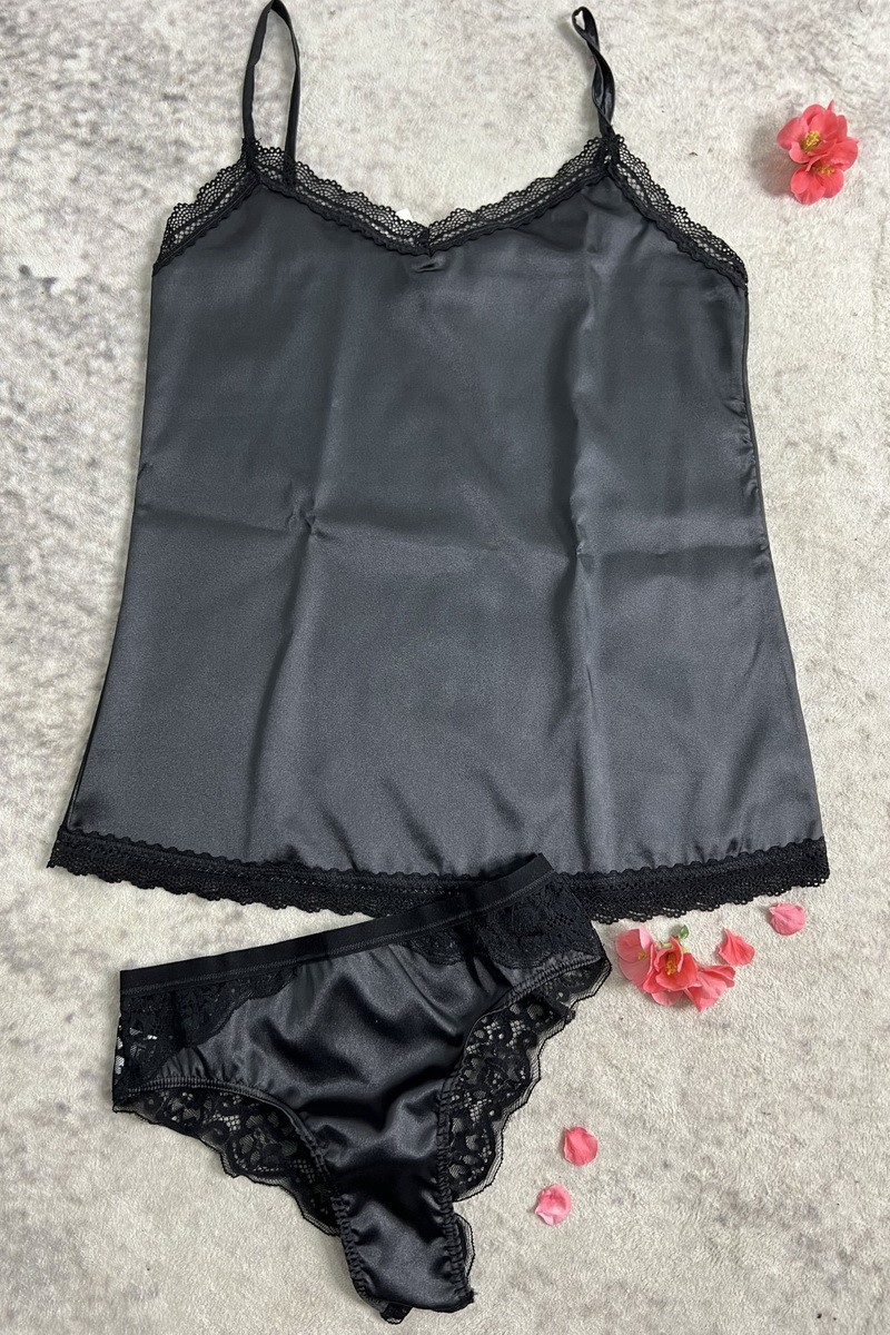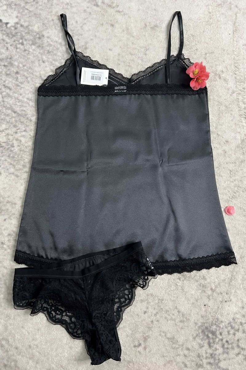 Compleu din saten fin , format din maieu cu bretele subtiri si chilot brazilian cu talie normala.
