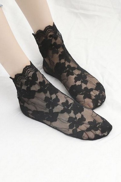 Sosete 1/4 cu model , flori elegante in jurul gambei ,pentru un plus de romantism.