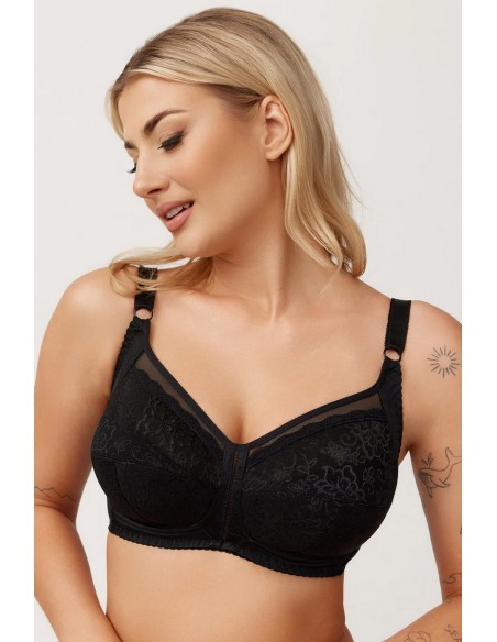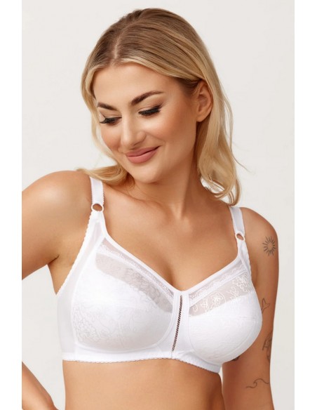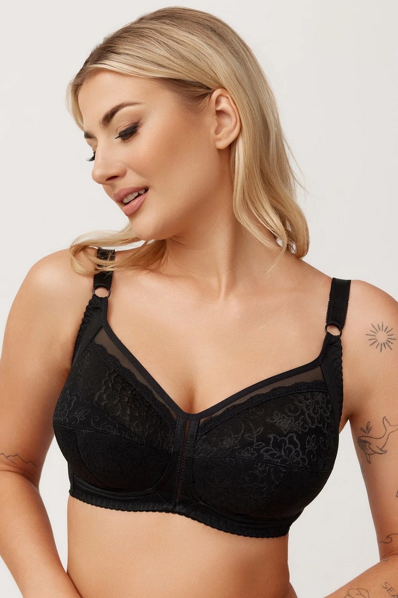 Sutien clasic cupa intreaga cu burete subtire, cupe captusite cu bumbac pe interior si cu dantela fina si tulle pe exterior.