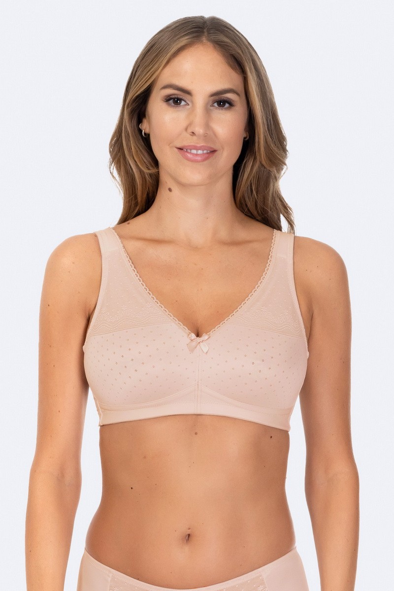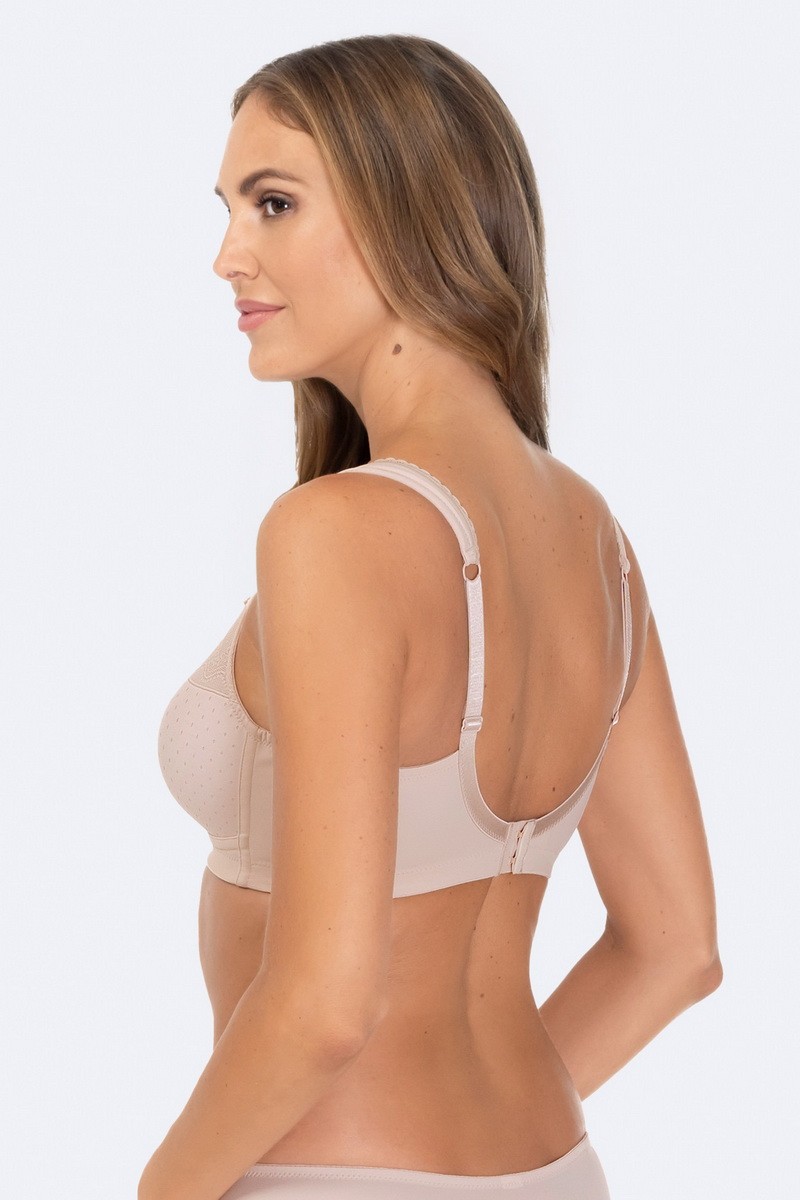 Fara sarma, prezinta bretele late, reglabile si captusite pe partea interioara, parti laterale late, cu intaritura sub sani.